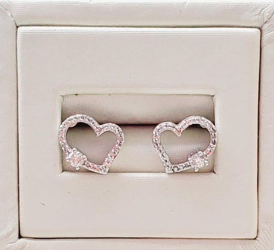 10K White Gold Heart Shaped Diamond Earrings
