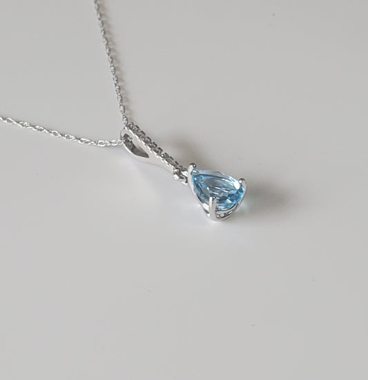 10k White Gold Diamond and Blue Topaz Teardrop Pendant