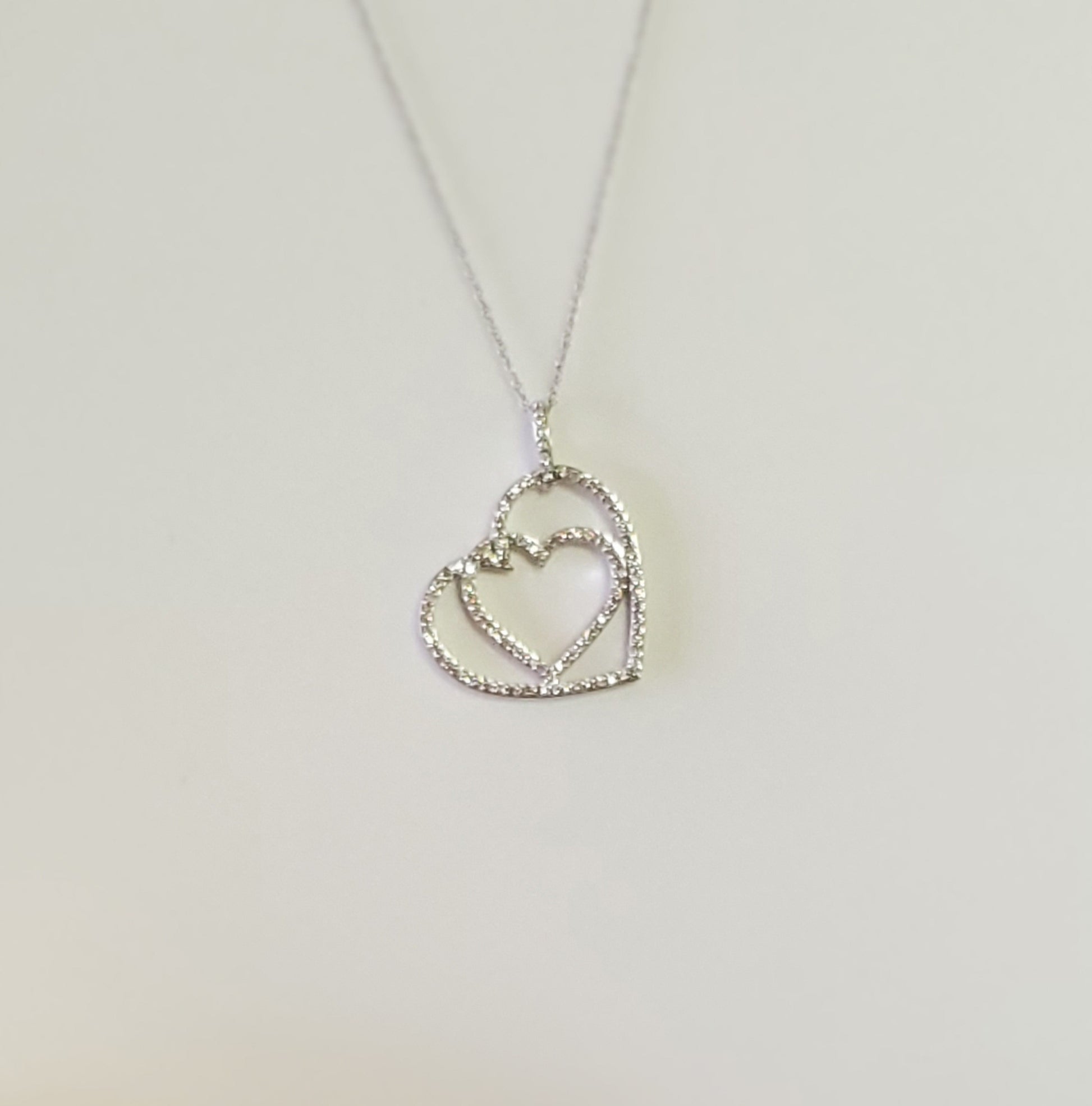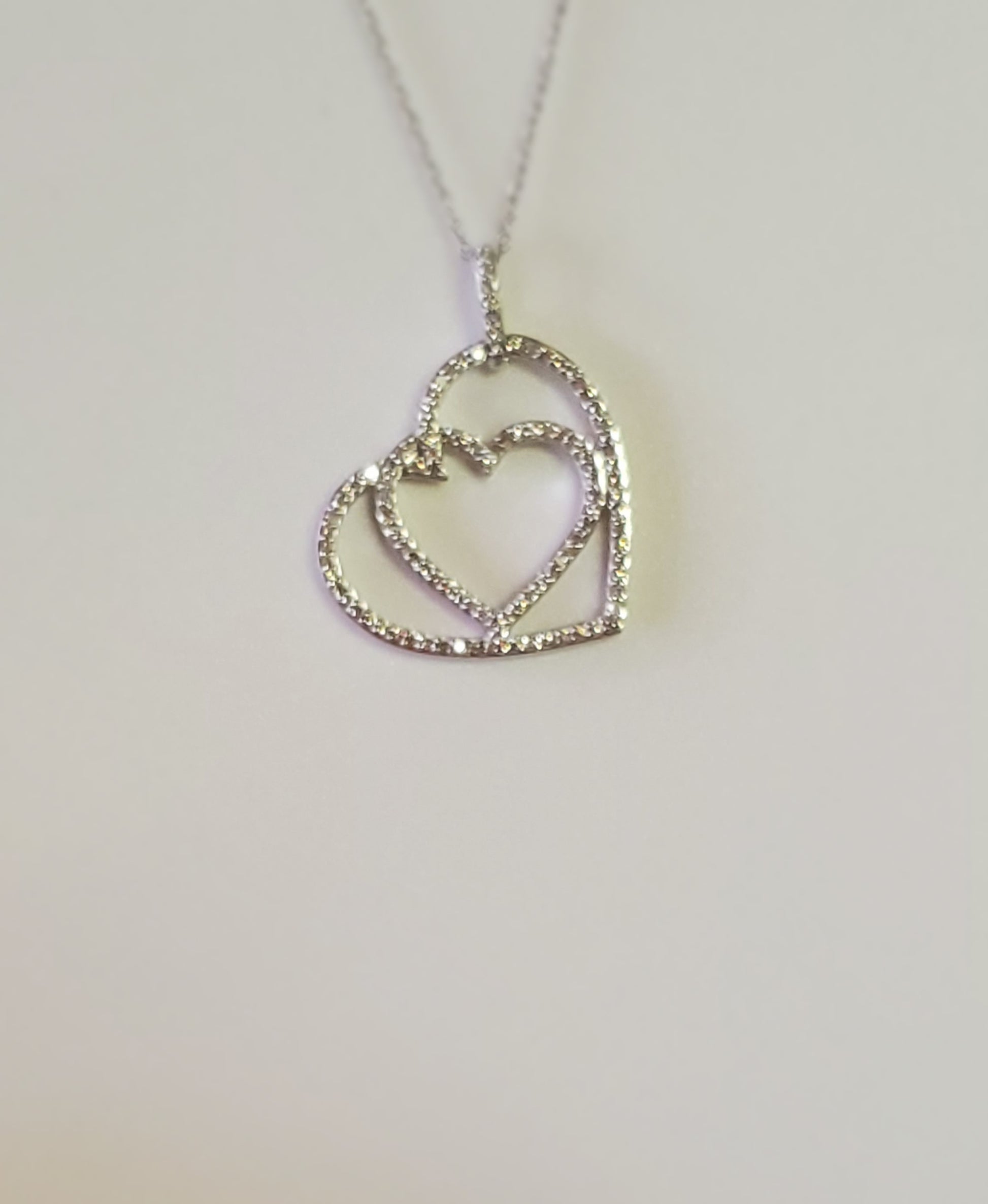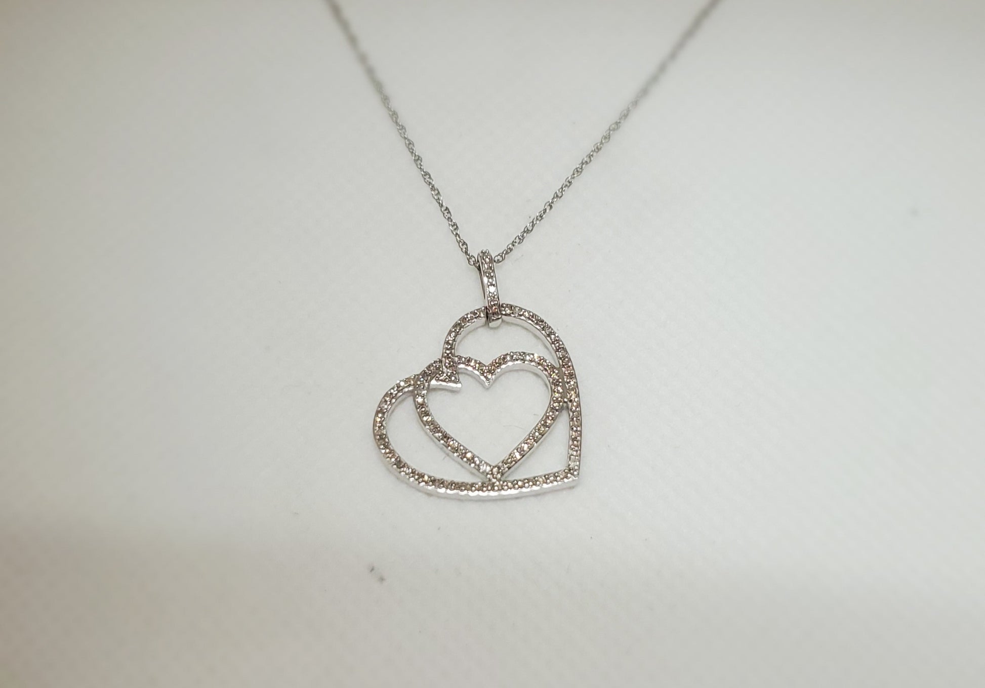 10K White Gold .25 Total Weight (TW) DiamondHearts Intwined Design Necklace, 18" chain included.