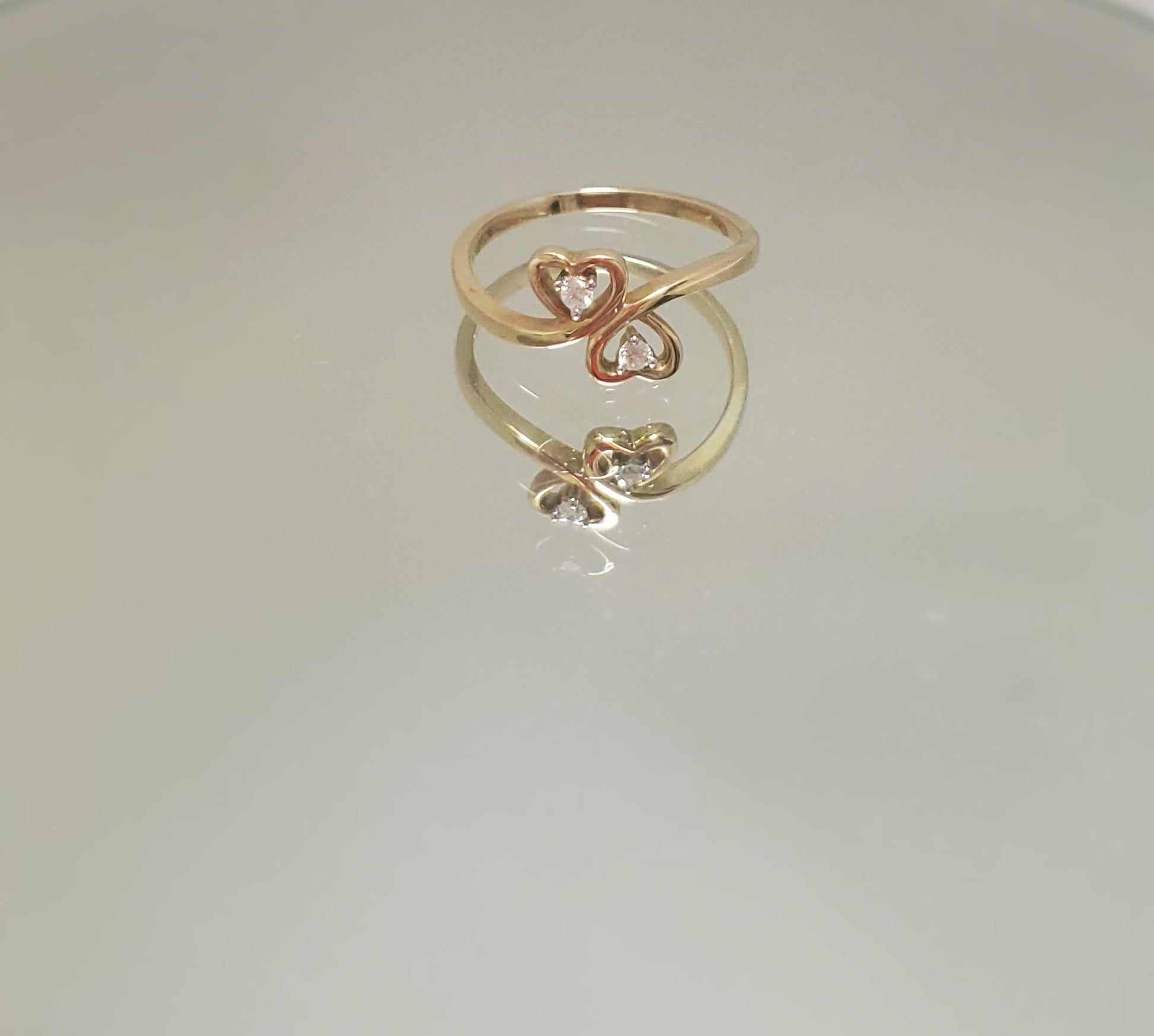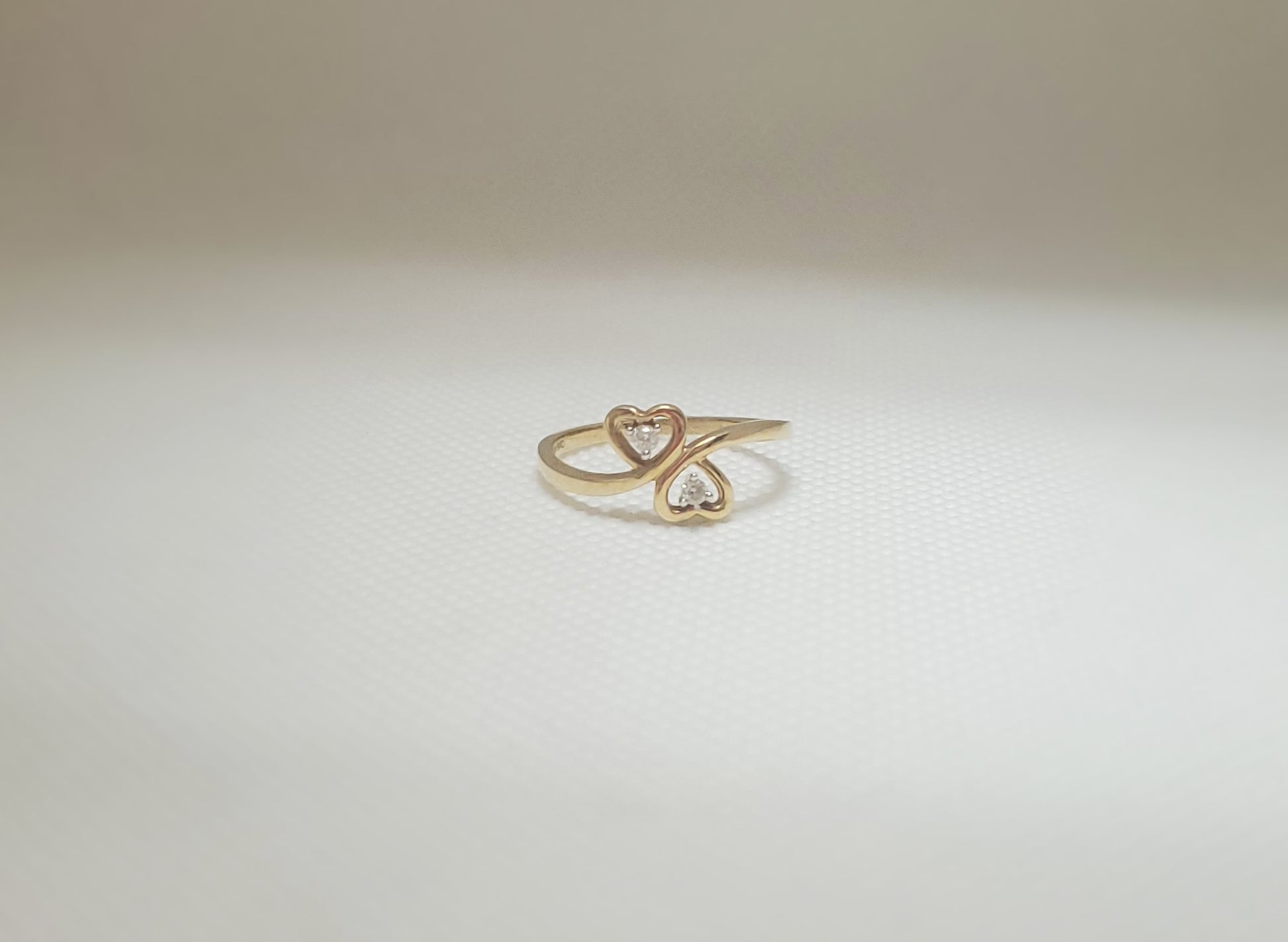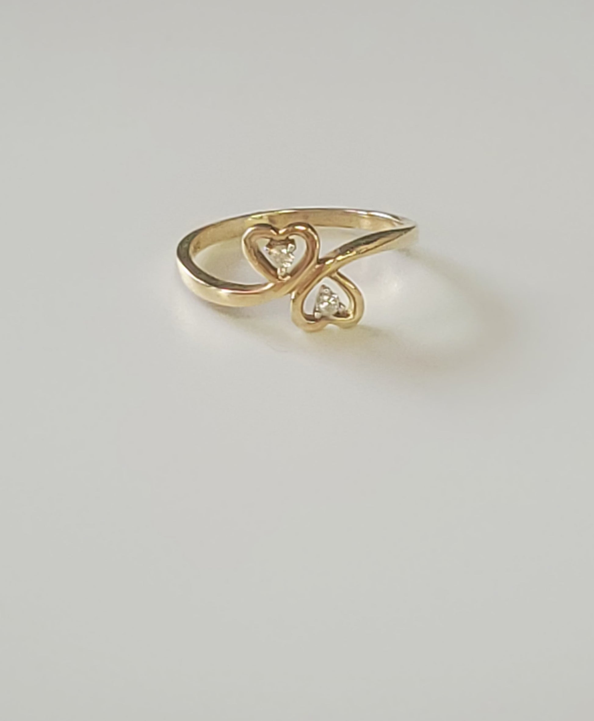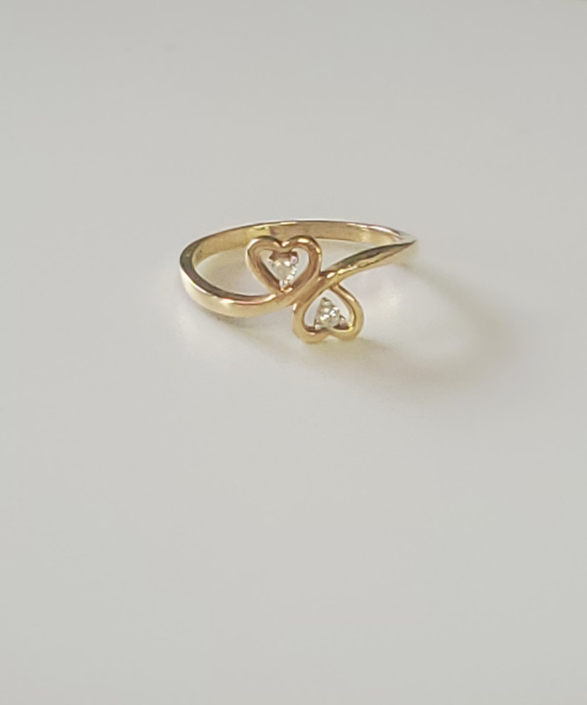10K Yellow Gold Double Heart Ring with diamond weight totaling .052 carats. Size 7