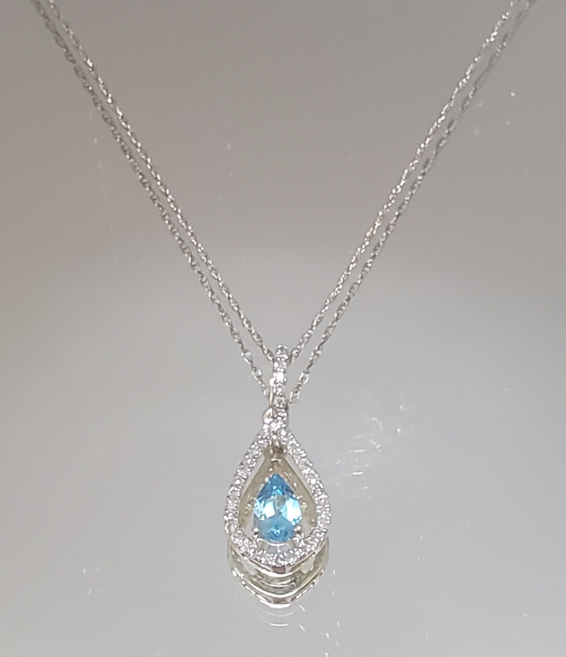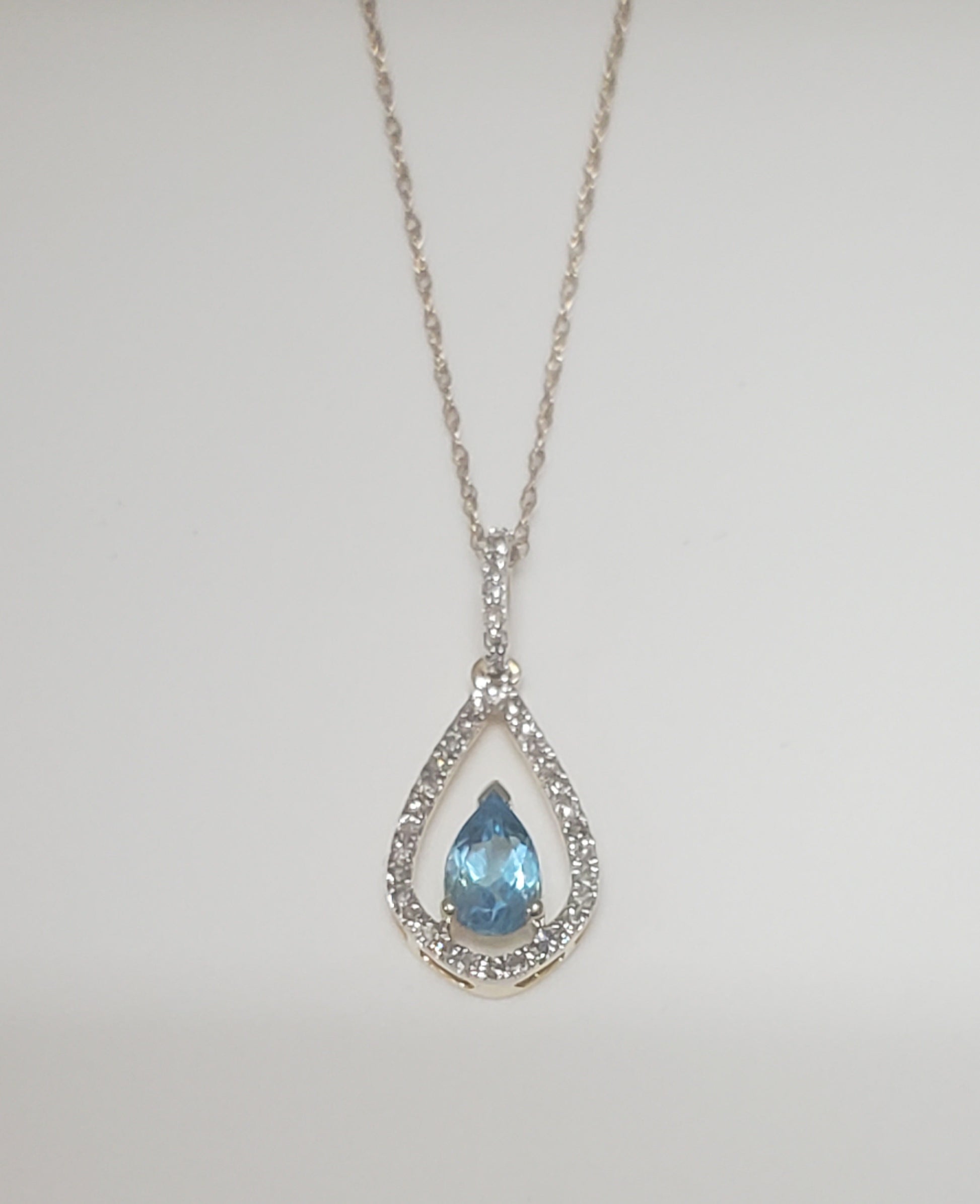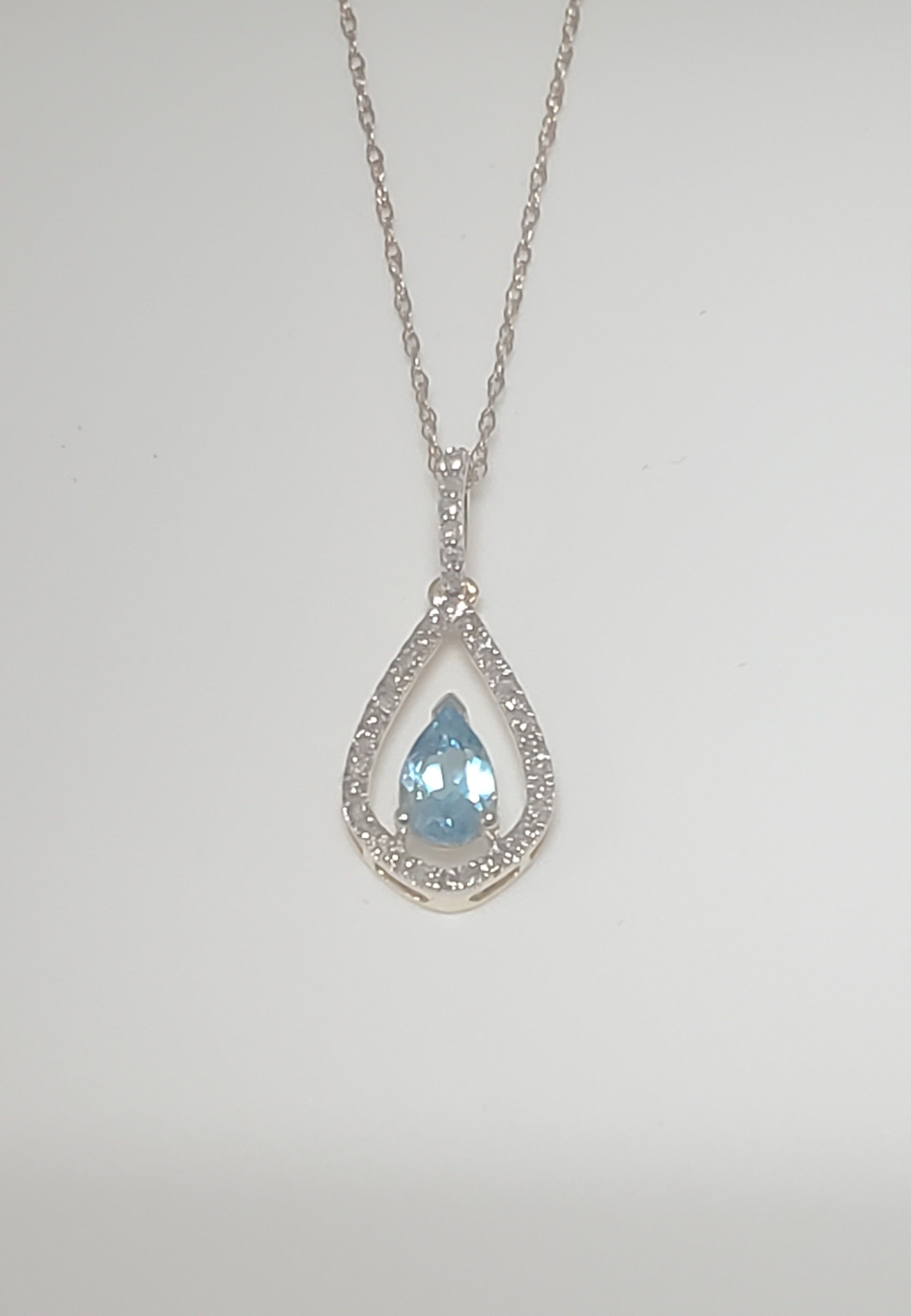 10k Yellow Gold Diamond and Blue Topaz Teardrop Pendant with 18" Chain. Diamond weight totaling .20 carats.